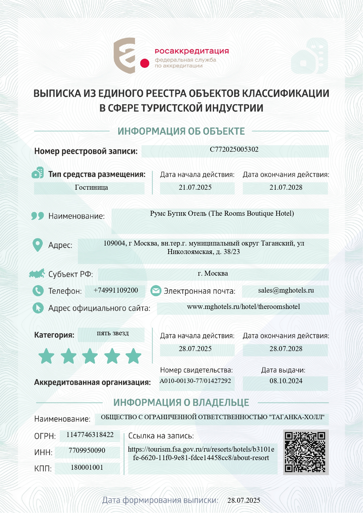 Бутик-отель The Rooms - бутик-отель премиум класса на Таганской, город Москва.